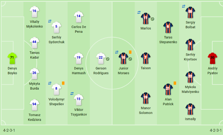 3. «Динамо» наконец-то готовилось в полном составе. От травм восстановились главные атакующие игроки «Динамо». Да, Цыганков и Соль еще далеки от своей идеальной формы, но украинец уже вышел в старте, хоть и отыграл только 60 минут, а испанец вышел на замену. Также матч в запасе начинал Беньямин Вербич, но нужно признать, де Пена сейчас находится в лучшей форме и может больше принести пользы команде. А у «Шахтера» были некоторые проблемы, но они были минимальные. Матч пропускал Виктор Коваленко. Он - неплохой игрок, но считать его основным будет неправильно. На его позиции отлично себя проявляет атакующий полузащитник Алан Патрик и Марлос.