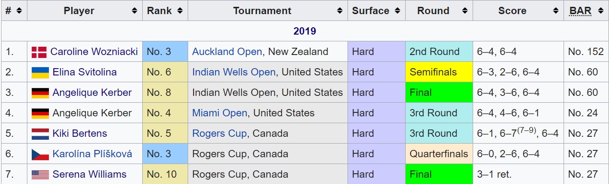 Андрееску выиграла 7 из 7 матчей против теннисисток из первой десятки