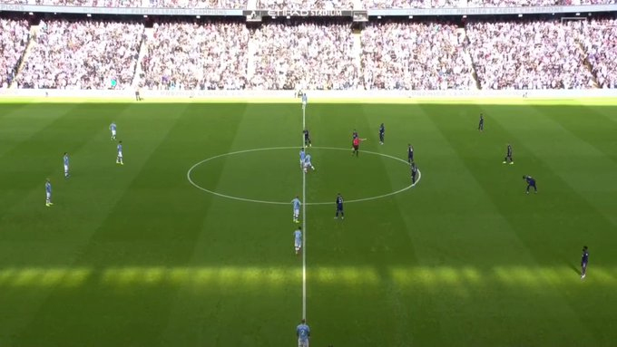 26 мин. Де Брёйне подал угловой справа, гости отбились, и Стерлинг на фланге должен был свалить убегавшего соперника, сорвав контратаку.
