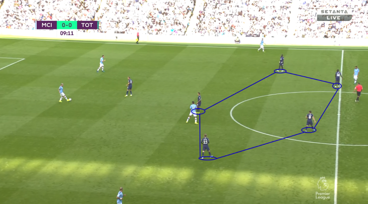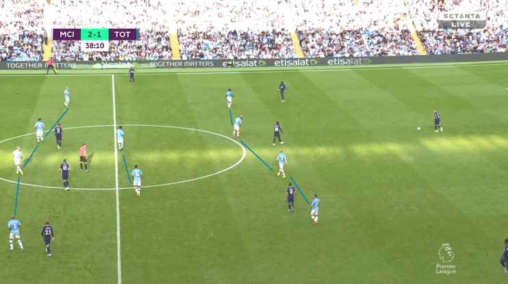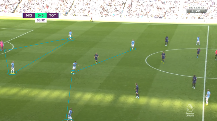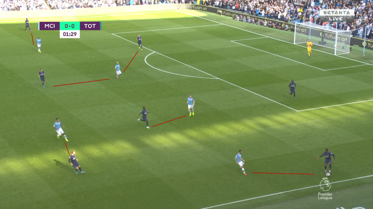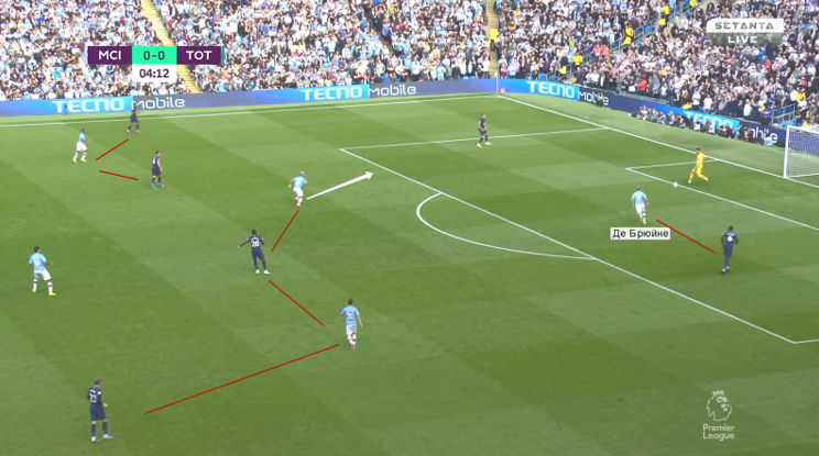 4. Одна из главных причин такого доминирования - прессинг «Сити». Он действительно был практически идеален и не давал «Тоттенхэму» шансов на качественный билд-ап.