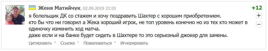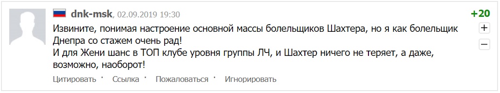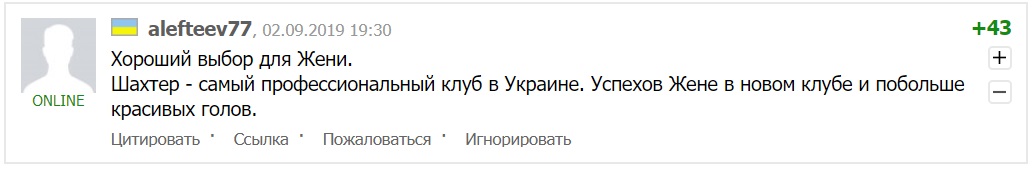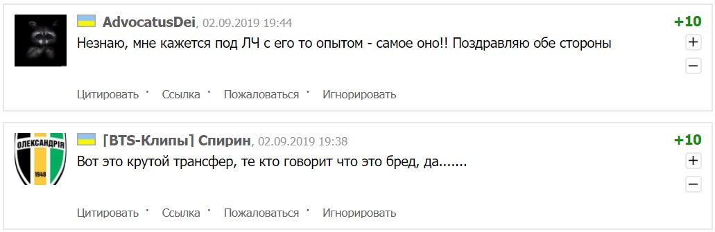 Некоторые болельщики назвали переход «зрадой», но большинство посчитало данный трансфер успехом для обеих сторон.