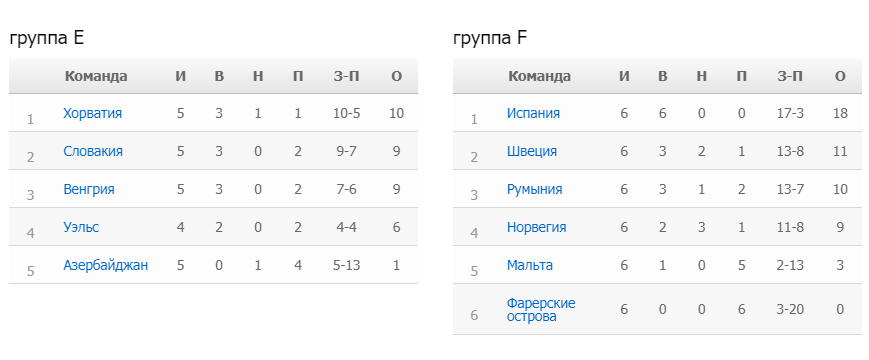 А в этой группе – еще сложнее. Вице-чемпионы мира хорваты в последнем туре неожиданно оступились в Азербайджане, и их преимущество над словаками и венграми – всего один пункт. Не выпал из борьбы и Уэльс, имеющий одну игру в запасе. Похоже, что в этой группе очки еще будут терять все. А еще группа примечательна тем, что прямой путевки в плей-офф от Лиги наций не имеет ни одна команда.