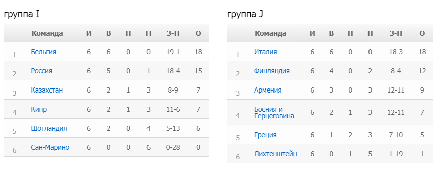 А вот здесь все достаточно прогнозировано. Бельгия – вне конкуренции, выигравшая все шесть матчей отбора с потрясающей разницей забитых и пропущенных 19 – 1. Уже никто и ничто не помешает этой команде пробиться на Евро. Скорее всего, попадет туда и Россия, опережающая ближайших преследователей – Кипр и Казахстан – на восемь очков. Однако Шотландия, идущая сейчас на пятом месте, имеет фору в виде гарантированного участия в матчах плей-офф.