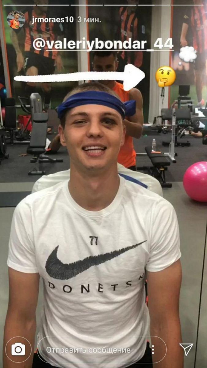32-летний форвард донецкого «Шахтера» Жуниор Мораес потроллил 20-летнего защитника донецкого клуба Валерия Бондаря.