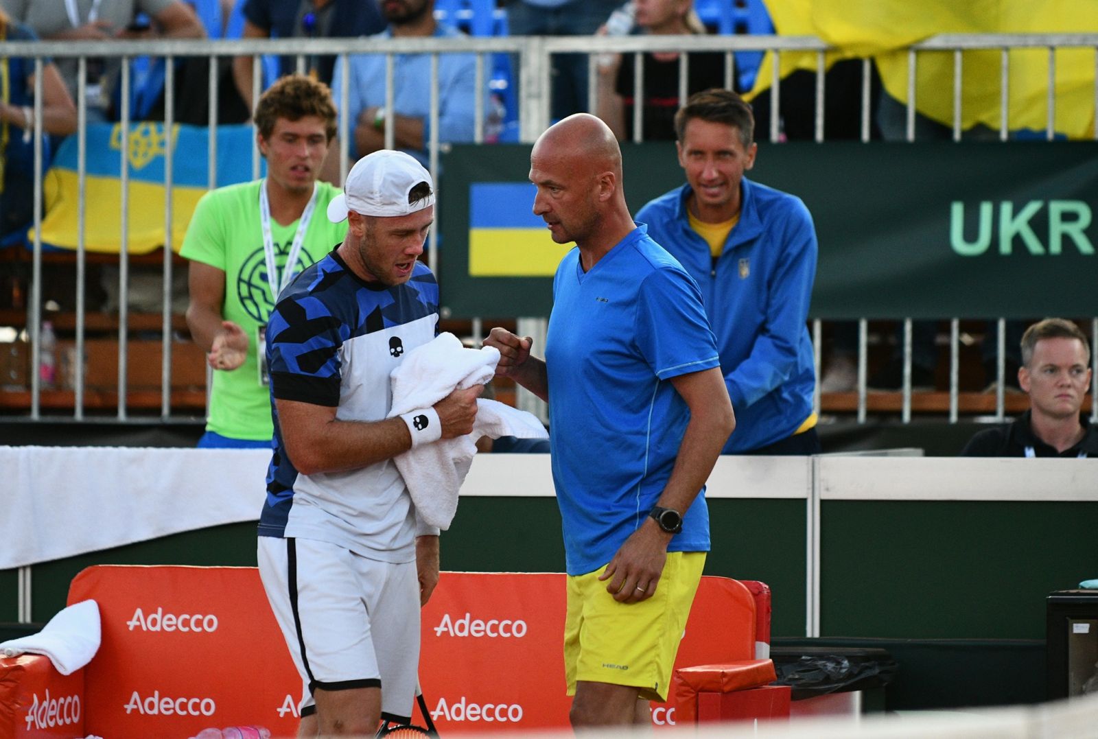 А вот оба судьи на вышке отсудили идеально, сделали свою работу на 100%. Большая им благодарность за это. Никаких спорных нюансов не возникало, они сразу спускались, проверяли след. В целом, матч прошел мирно, по-спортивному. Естественно, как это может быть в рамках Кубка Дэвиса.