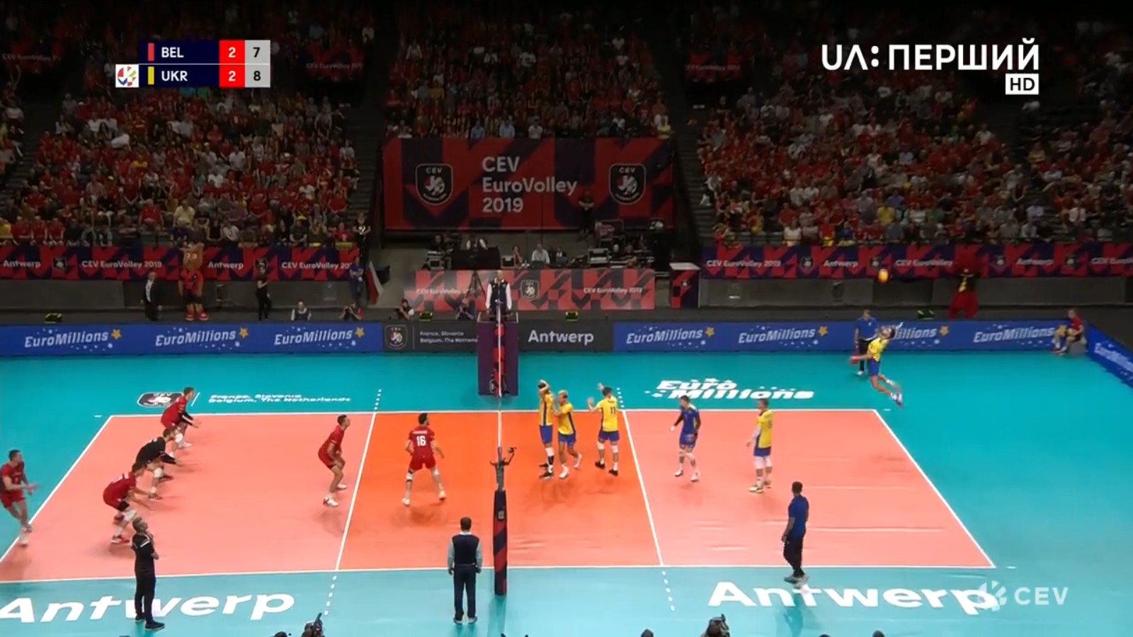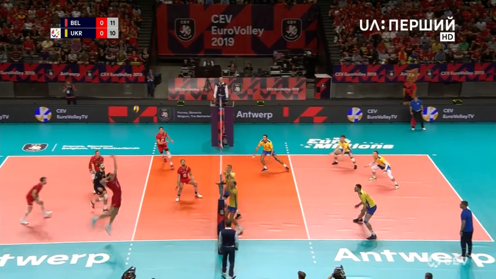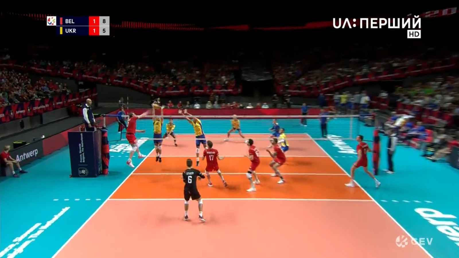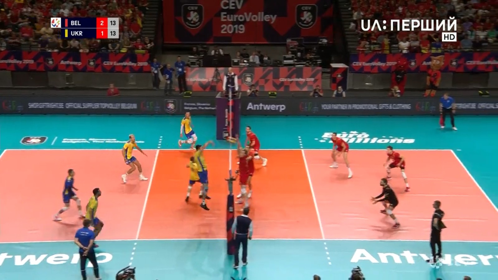 13:14. В аут пробивает Бельгия. И впервые Украина лидирует в первом сете.