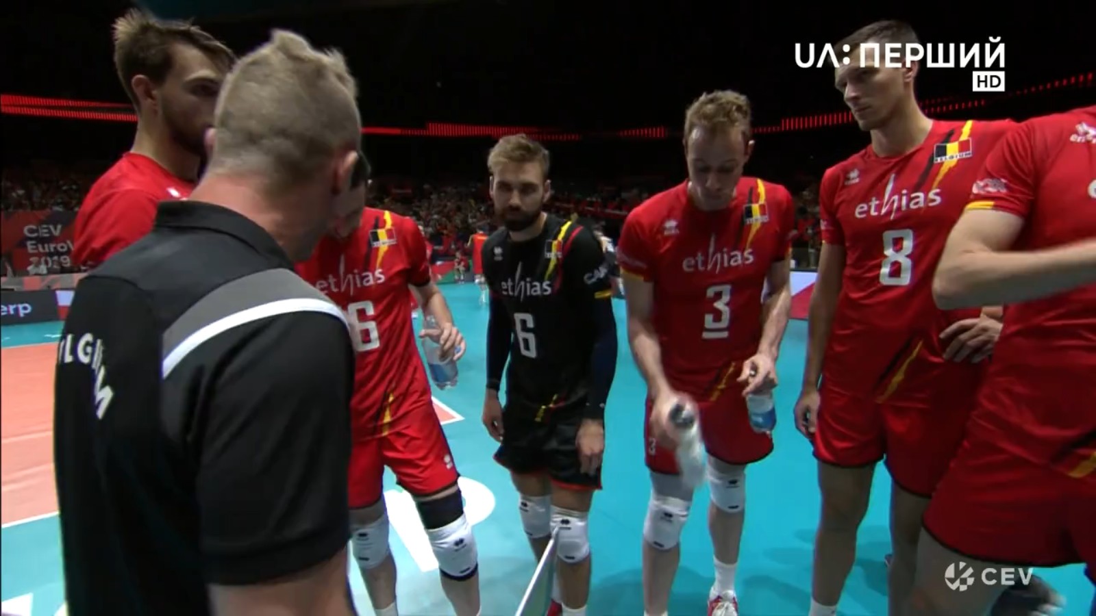 16:19. Плохой прием бельгийцев. Со второй попытки Теременко попадает в шестую зону. Тайм-аут Бельгии!