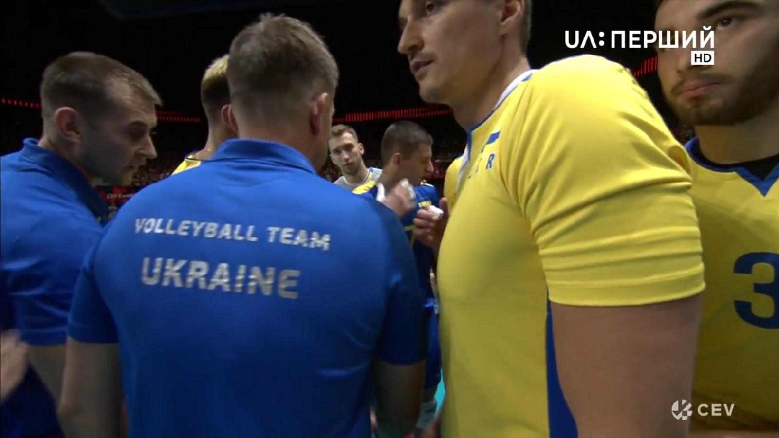 18:18. Ошибка на приеме у Украины. Тайм-аут Украины. Крастиньш делает установку на концовку партии.