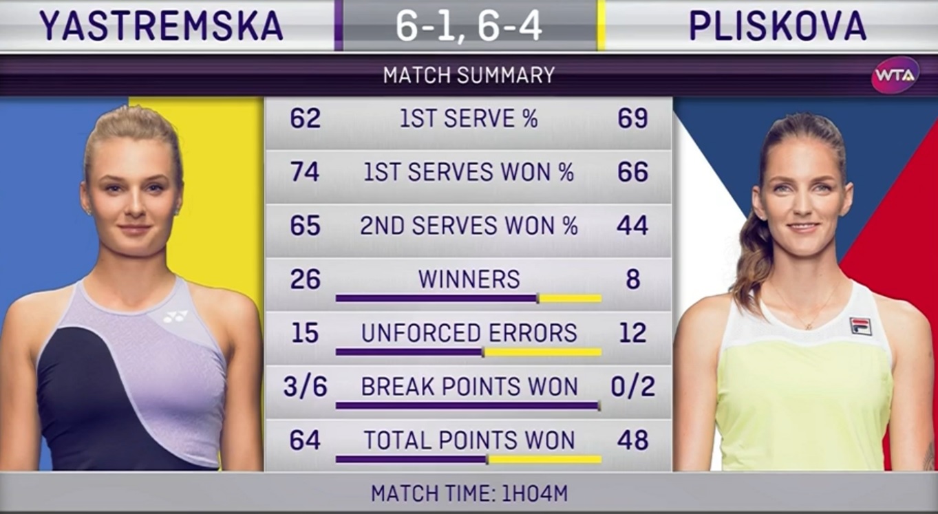 Даяна Ястремская (Украина) – Каролина Плишкова (Чехия) – 6:1, 6:4