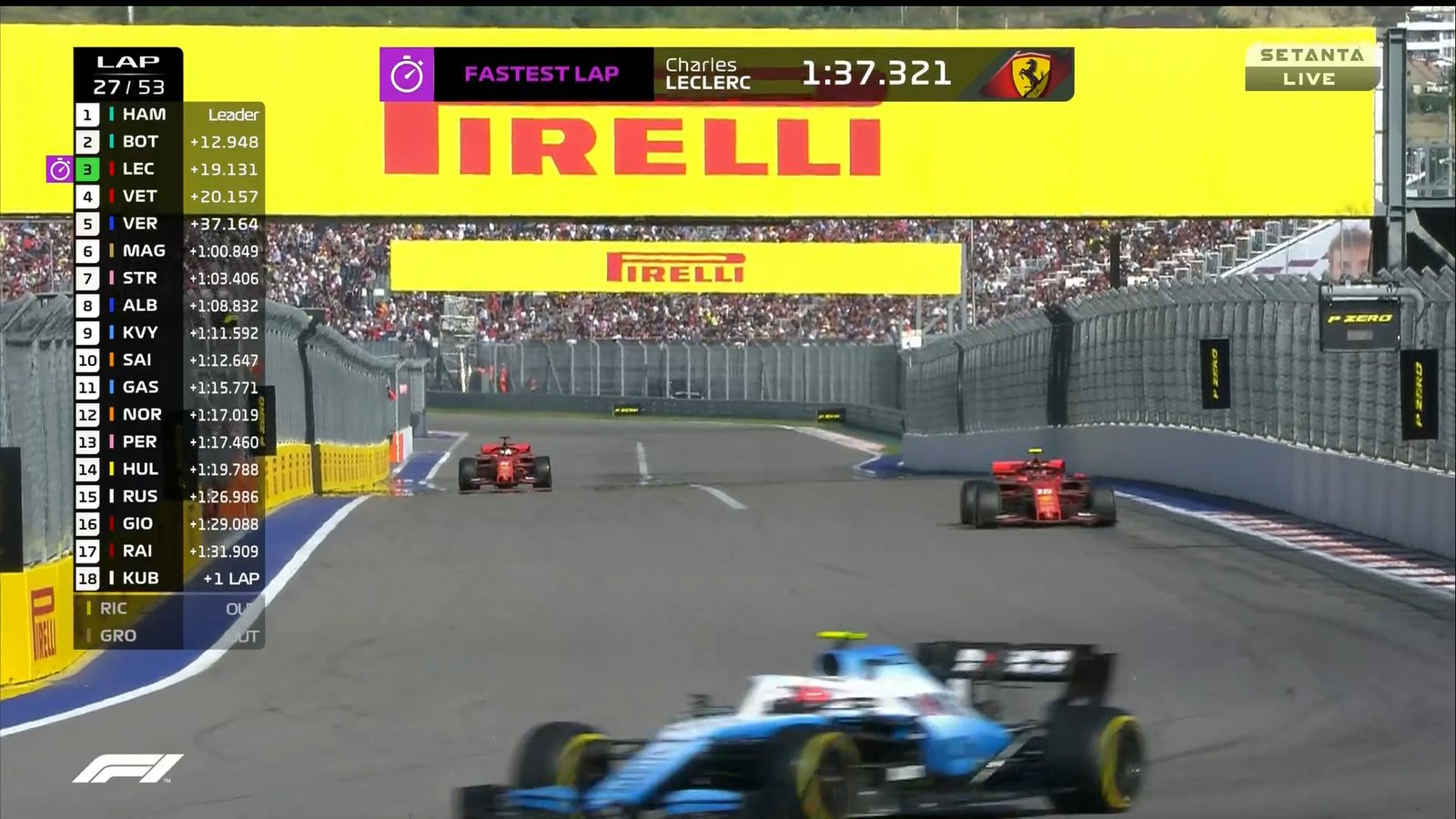 Leclerc boxes and drops to P4, with a Mercedes 2-3 behind Vettel#F1 🇷🇺 #RussianGP pic.twitter.com/oIT7HU9mQ3
