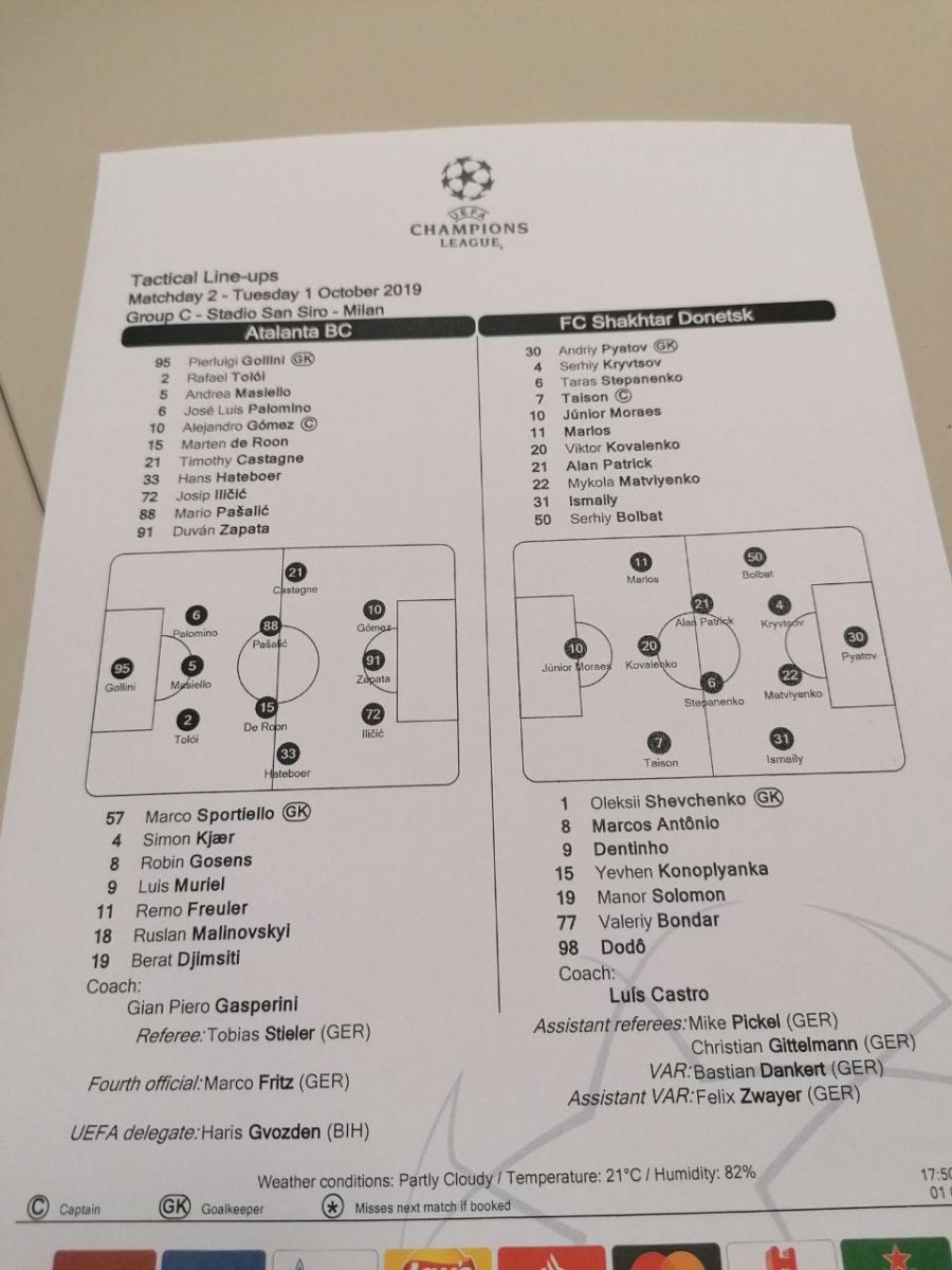 Во вторник, 1-го октября, состоится поединок второго тура группового раунда Лиги чемпионов, в котором «Аталанта» будет принимать донецкий «Шахтер». Матч пройдет в Милане на стадионе «Сан-Сиро», начало – в 19:55 по киевскому времени.