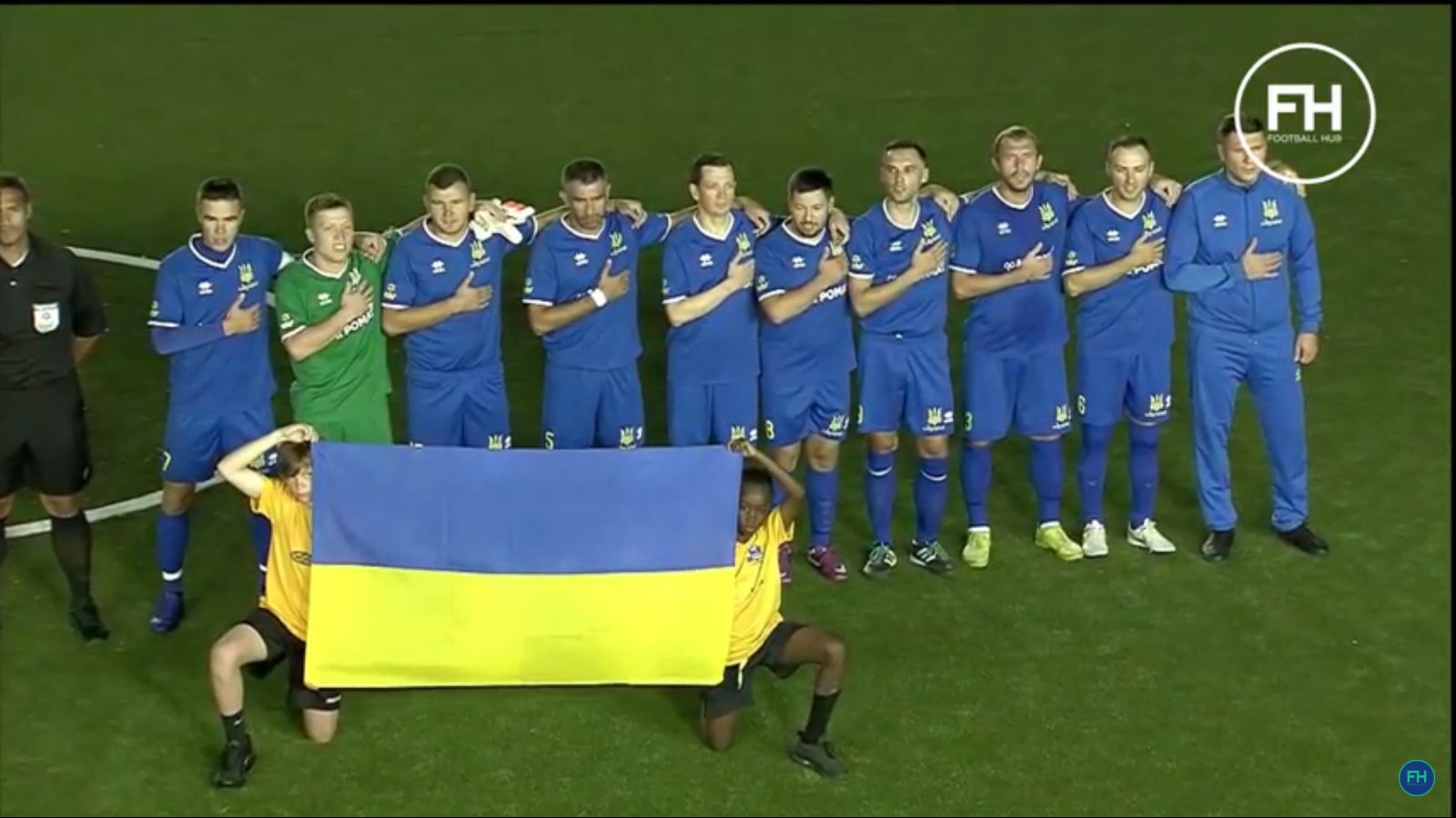 15:30. Начало матча. Украина в синей форме, Румыния в желтой.