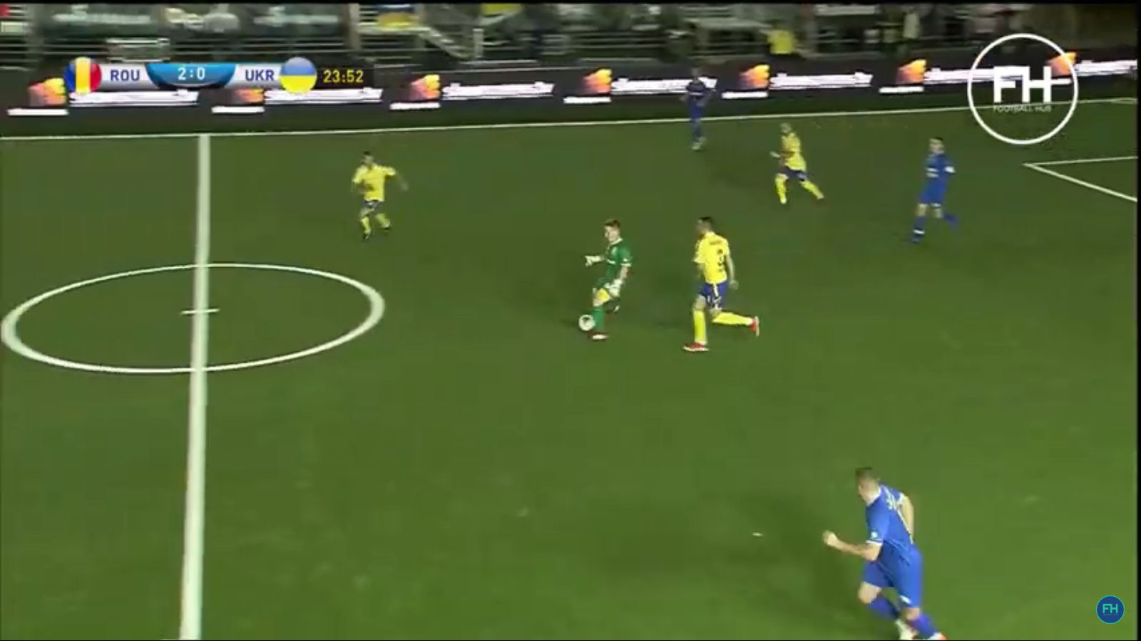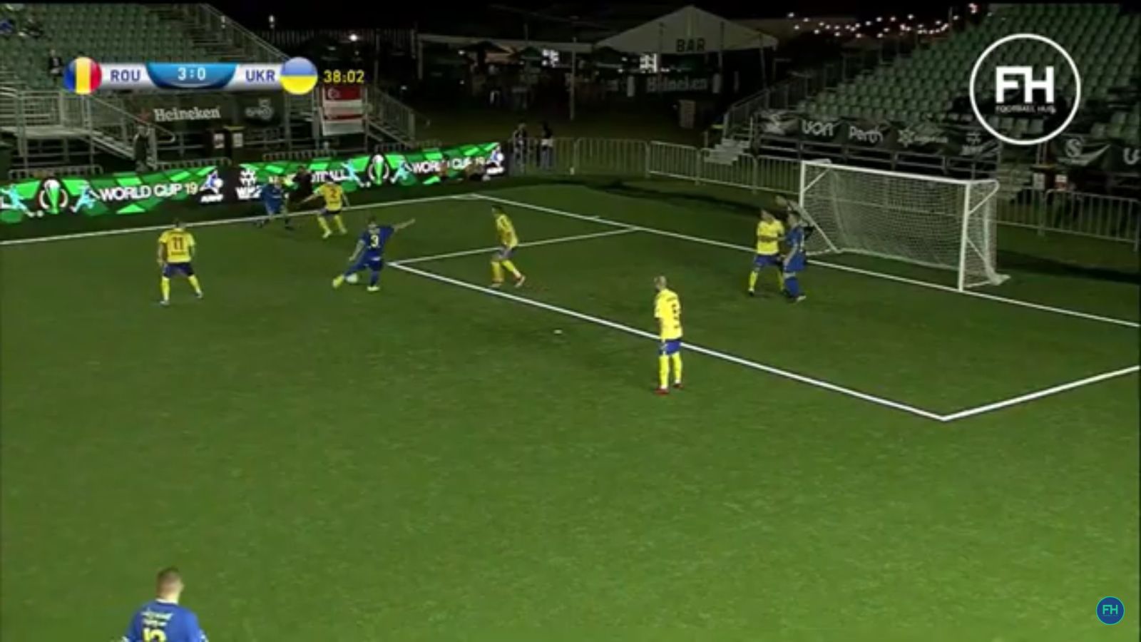 30 мин. Штанга! Чуть пяткой не забили румыны. Станчу очень технично сыграл после прострела с центра.