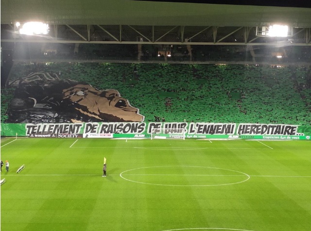 Дерби на минувших выходных прошло не только в Италии: так, во Франции «Сент-Этьен» принял «Лион». Ради одного из самых горячих дерби страны фанаты «зелёных» расстарались, украсив сразу две трибуны красочной хореографией.