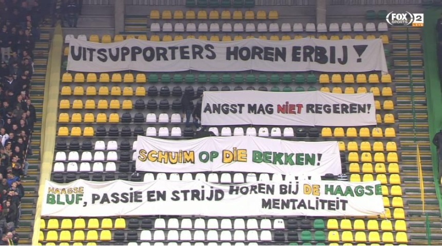 Как следствие, в домашнем матче против «Аякса» фаны гаагцев до 12-й минуты не заходили на трибуны, вывесив на месте себя баннеры «Гости - тоже часть футбола» «Нельзя позволить страху нами управлять» и тому подобным содержанием.