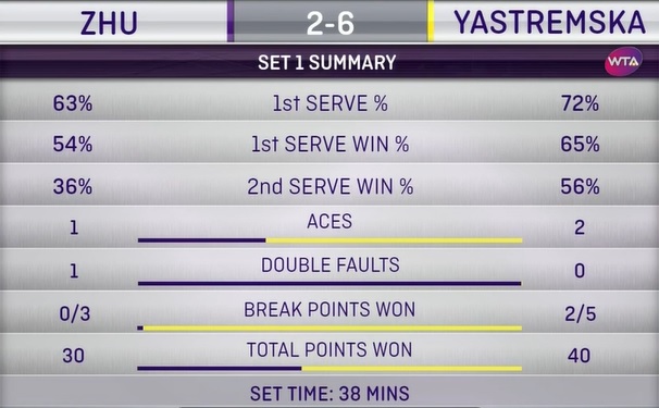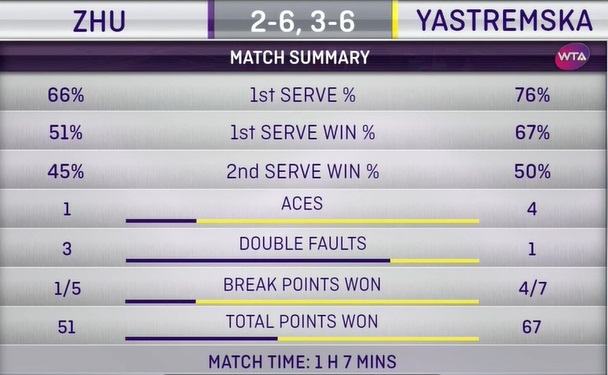 Даяна Ястремская (Украина) – Чжу Линь (Китай) – 6:2, 6:3