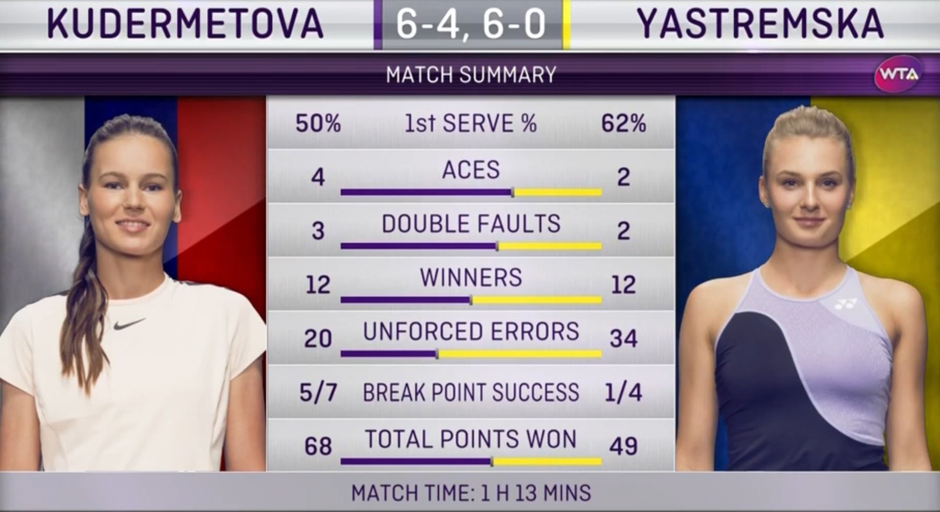 Даяна Ястремская (Украина) – Вероника Кудерметова (Россия) – 4:6, 0:6