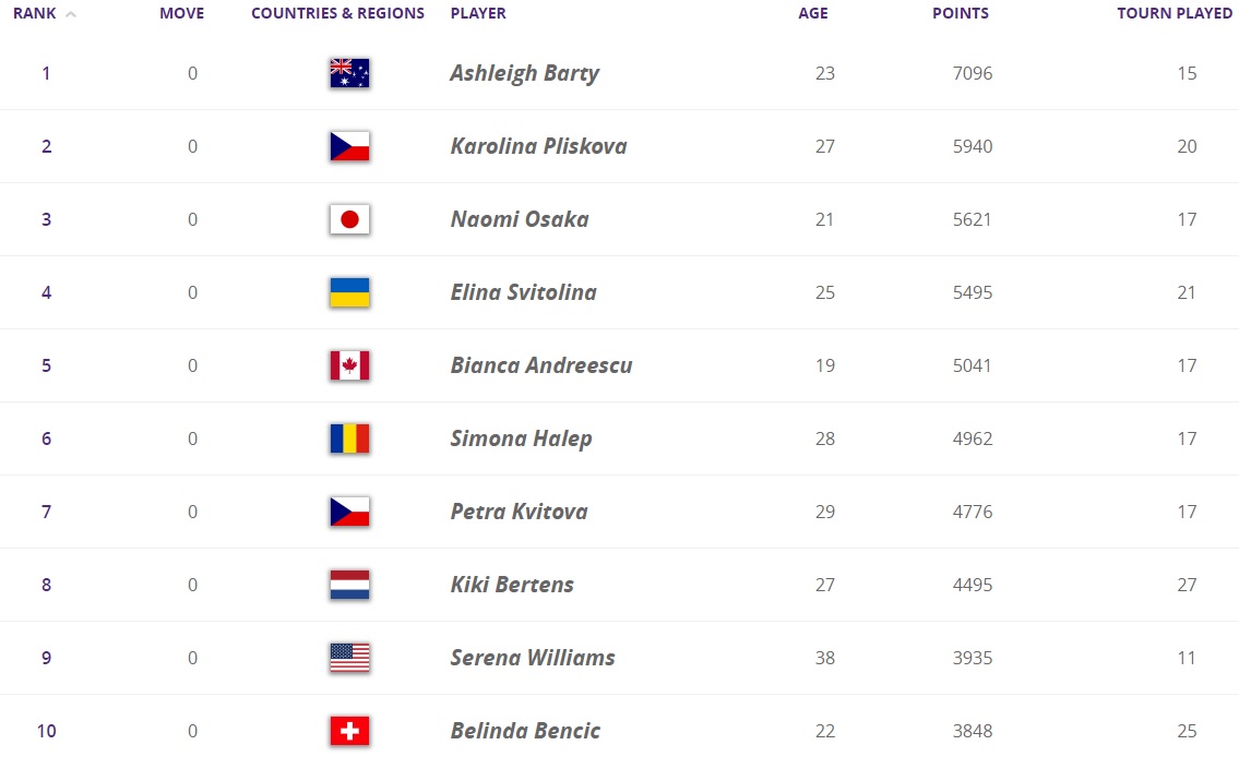 Что касается теннисисток из первой десятки, то на турнире в Линце играли Кики Бертенс и Белинда Бенчич, но изменений в топ-10 не произошло.