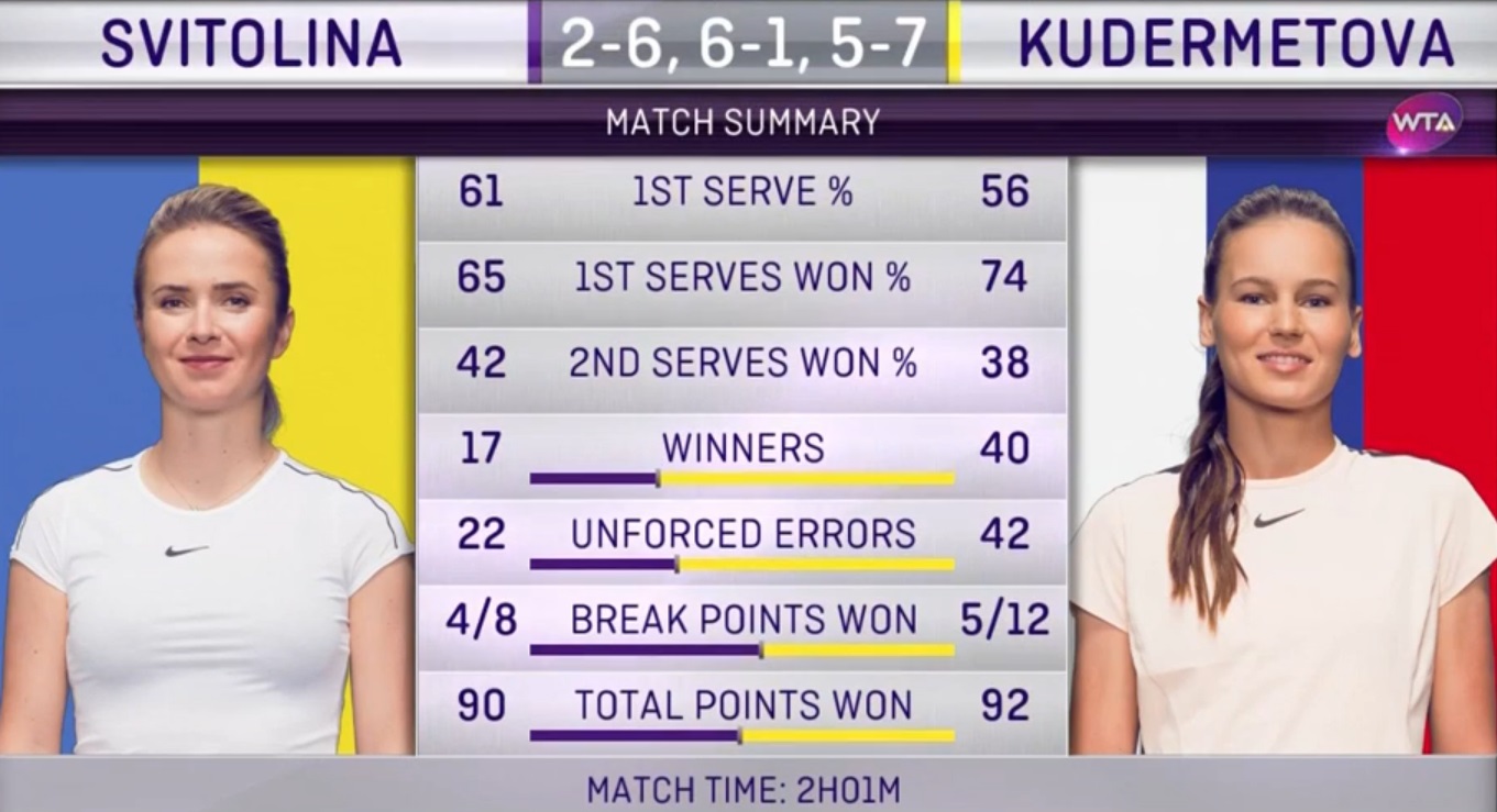 Элина Свитолина (Украина) – Вероника Кудерметова (Россия) – 2:6, 6:1, 5:7