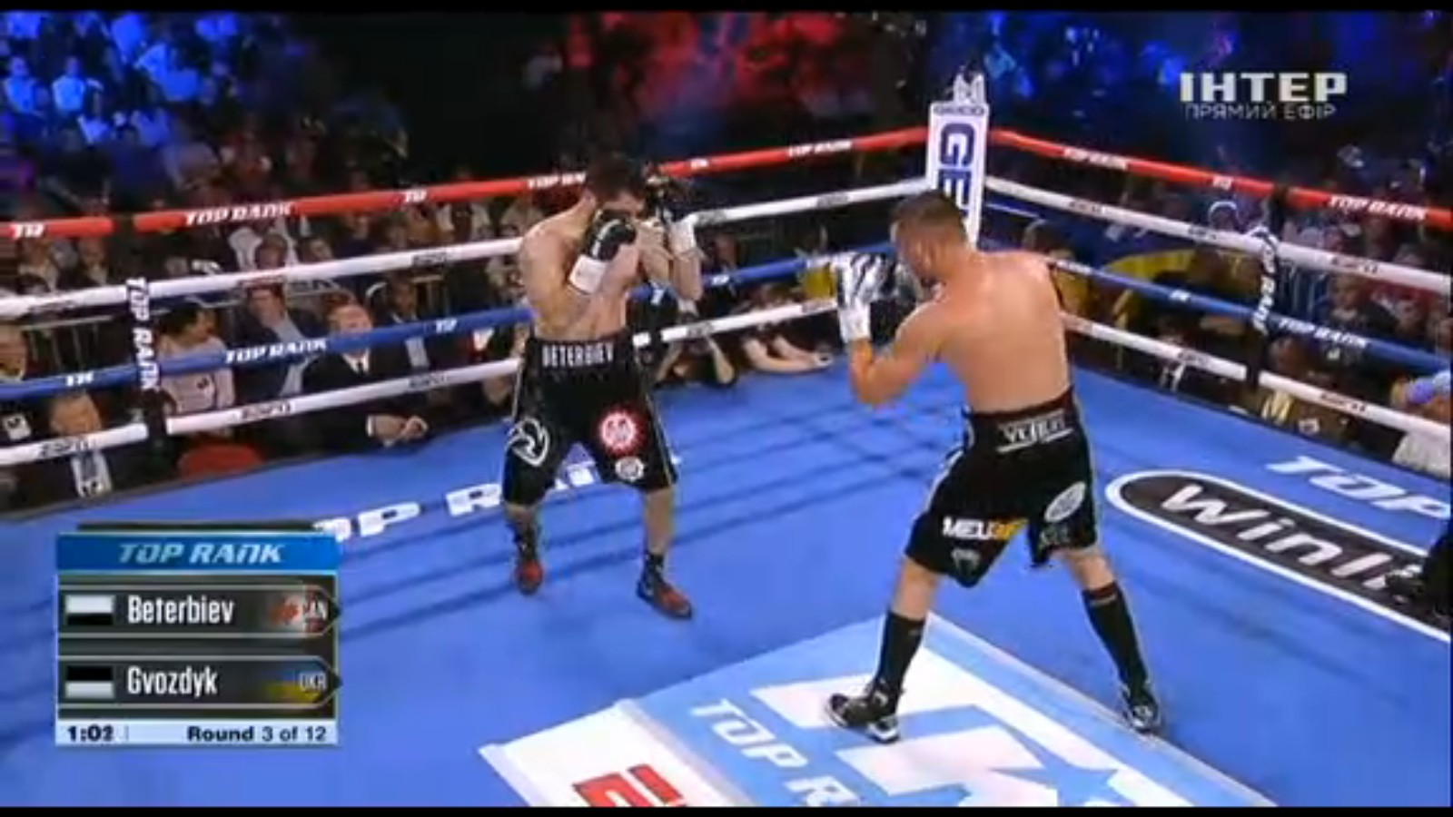 07:08. 7-й раунд. Гвоздик провел серию точных ударов, Бетербиев ответил. Очень равный бой сегодня!