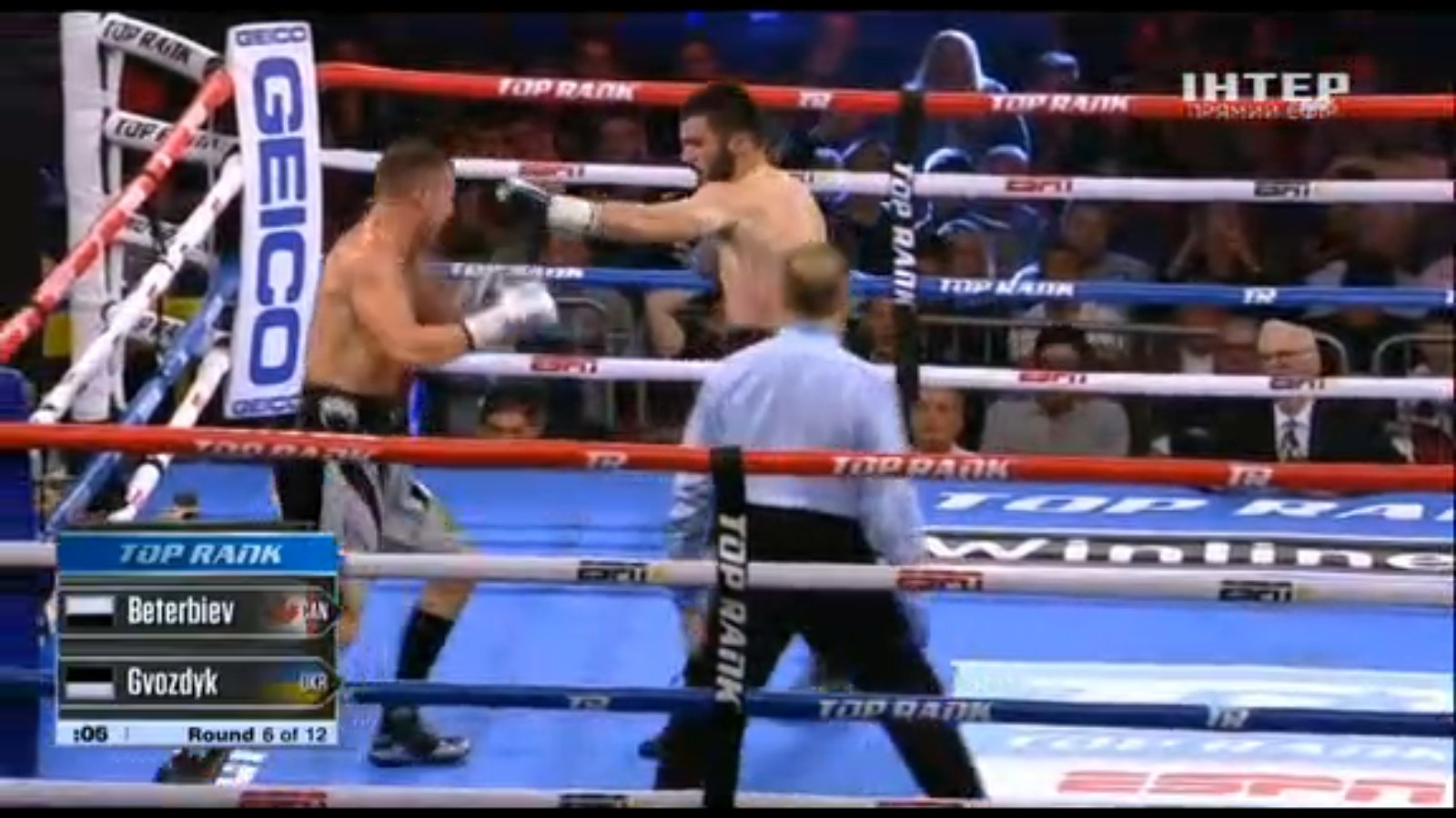 07:00. 5-й раунд. Вначале прошел удар через руку у Бетербиева, Гвоздик достойно отвечает.