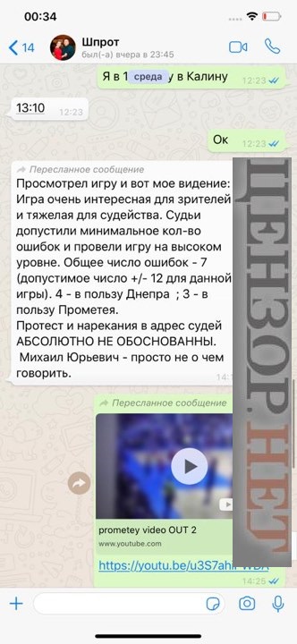 Позже Коломойский переписывался с президентом «Прометея» Владимиром Дубинским. На двух скриншотах видно, что Коломойский отправил президенту «Прометея» копию протеста на результат матча.