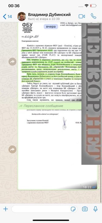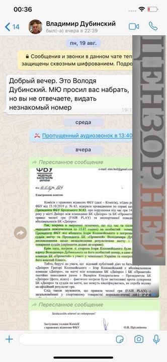 Коломойский начал писать Бродскому после матча «Днепра» с «Прометеем» (60:67). Коломойский в грубой форме заявил, что недоволен таким судейством, на что Бродский отвечал ему, что арбитры отработали матч чисто. Также функционеры обменивались видео со спорными моментами матча.