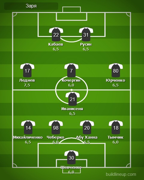 Замены «Зари»: Максим Лунёв - 6,0; Максим Белый - 6,0; Дмитрий Хомченовский - 6,0