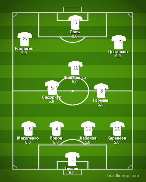 «Динамо»: Бущан - Караваєв, Попов, Шабанов, Миколенко - Сидорчук, Гармаш (Шепелев, 79), Шапаренко - Циганков, Соль (Беседин, 46), Родригес (Вербич, 46)