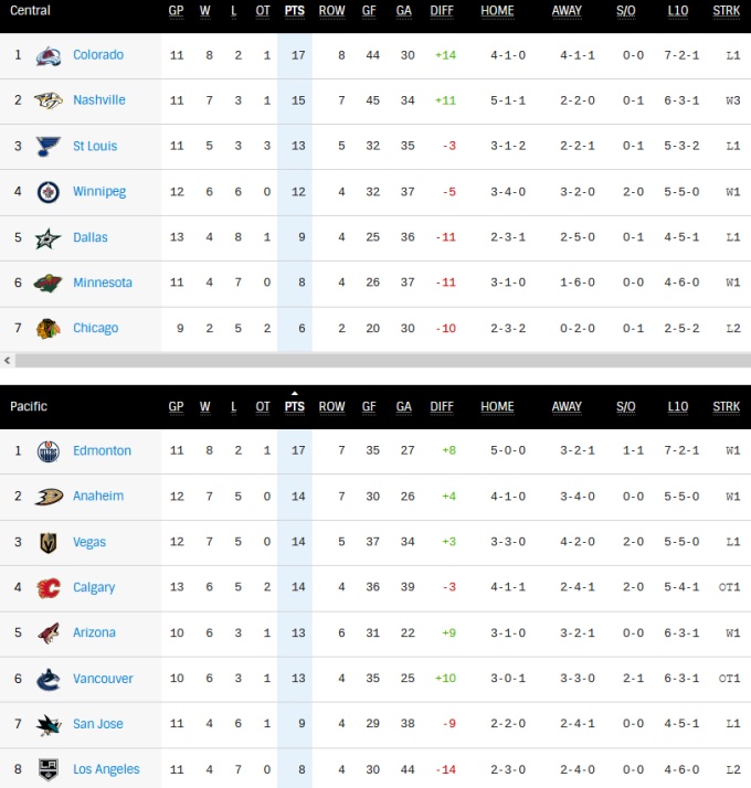 Результаты очередного игрового дня НХЛ и таблица чемпионата.