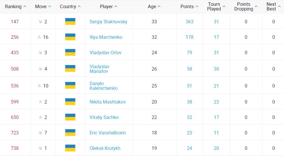 Среди украинцев продолжает подниматься в рейтинге Илья Марченко. На прошлой неделе теннисист вышел в четвертьфинал турнира в Бресте, что позволило ему преодолеть еще 16 позиций в туре. Теперь Илья занимает 256-е место.