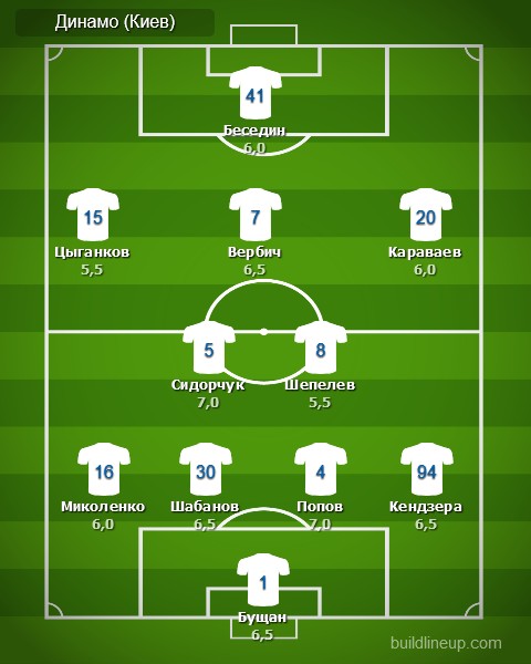 «Динамо»: Георгий Бущан, Виталий Миколенко, Денис Попов, Артем Шабанов, Томаш Кендзёра, Сергей Сидорчук, Владимир Шепелев, Виктор Цыганков, Беньямин Вербич (Карлос Де Пена, 101), Александр Караваев, Артем Беседин (Денис Гармаш, 90)