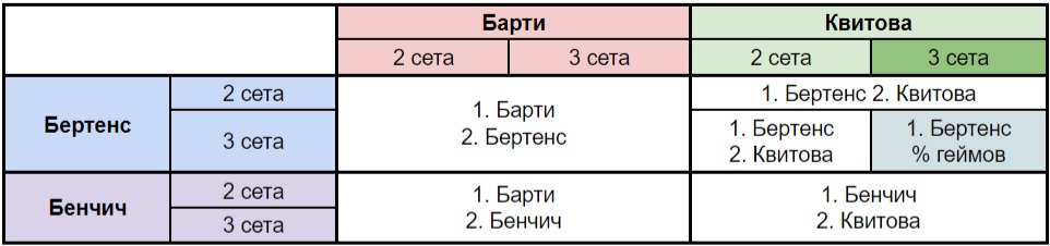 - всех, кроме Квитовой, устроит собственная победа с ЛЮБЫМ счетом,