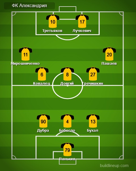 «Александрия»: Юрий Панькив, Денис Мирошниченко, Каспарс Дубра, Владислав Бабогло, Глеб Бухал, Павел Пашаев, Кирилл Ковалец (Василий Грицук, 83), Алексей Довгий (Денис Безбородько, 46), Максим Третьяков, Валерий Лучкевич (Жоао Тейшейра, 91), Дмитрий Гречишкин,