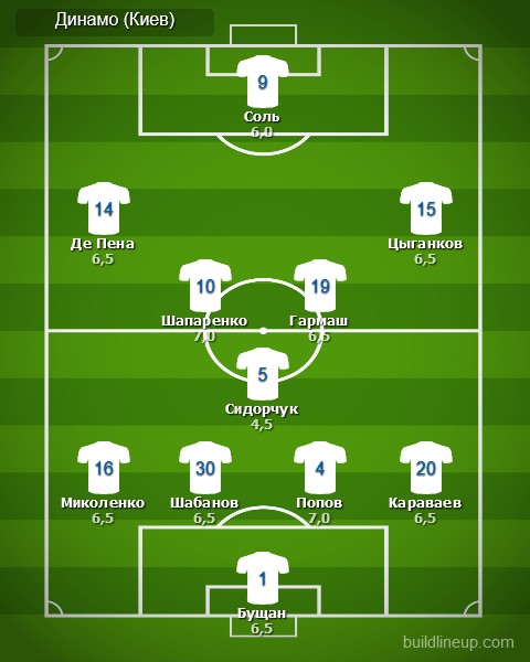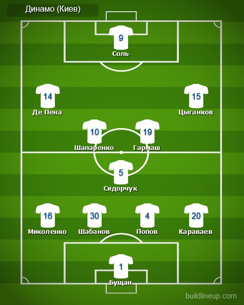 «Динамо»: Георгий Бущан, Виталий Миколенко, Артем Шабанов, Денис Попов, Aлександр Караваев, Сергей Сидорчук, Николай Шапаренко, Денис Гармаш (Александр Андриевский, 83), Карлос Де Пена (Артем Беседин, 76), Фран Соль (Беньямин Вербич, 46), Виктор Цыганков