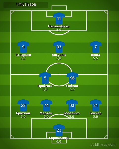 Замены «Львова»: Педро - 5,0; Велвес - 5,0; Фелипе - б/о.
