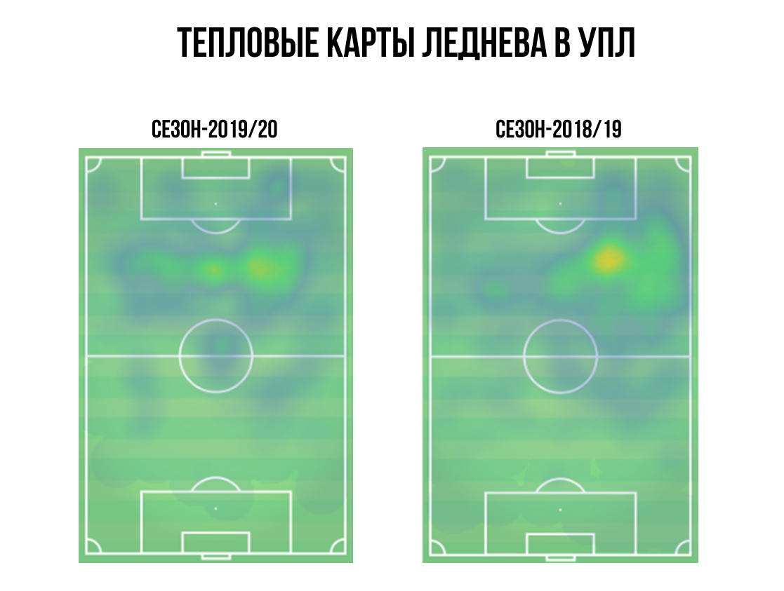 Да, Леднева по-прежнему несколько тянет направо, но уже не столь очевидно, как ранее. Это позволяет ему не перекрывать зоны для совершающих забеги с мячом фулбеков, а также максимально оттягивать внимание на себя со стороны защитников команды-соперницы. Кроме того, работая более широко в своей зоне, Леднев помогает команде как эффективнее сделать фланговую игру, так и разнообразить ее за счет качественной работы центральной оси. Даже в штрафную соперника Богдан в текущем сезоне заходит не только привычно справа, но и из района левого фланга.