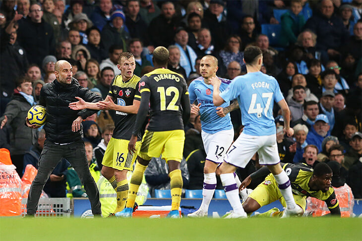 Предпоследний матч чемпионата «Саутгемптон» проиграл 0:9, а в последнем ему предстояло сыграть на поле действующего чемпиона Англии. Неудивительно, что тянуть время «святые» начали с пятнадцатой минуты, когда благодаря ошибке Эдерсона открыли счет: в частности, помощник Ральфа Хазенхюттля Рихард Китцбихлер долго не возвращал в игру прилетевший к нему мяч. Во втором тайме, когда «Ман Сити» забил два и вышел вперед, Гвардиола поймал мяч и протянул его скамейке «Саутгемптона» - а сейчас, мол, не хотите время потянуть?