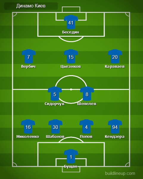 «Динамо»: Георгий Бущан – Виталий Миколенко, Артем Шабанов, Денис Попов, Томаш Кендзёра – Сергей Сидорчук, Владимир Шепелев – Беньямин Вербич (Карлос Де Пена, 89), Виктор Цыганков, Александр Караваев – Артем Беседин