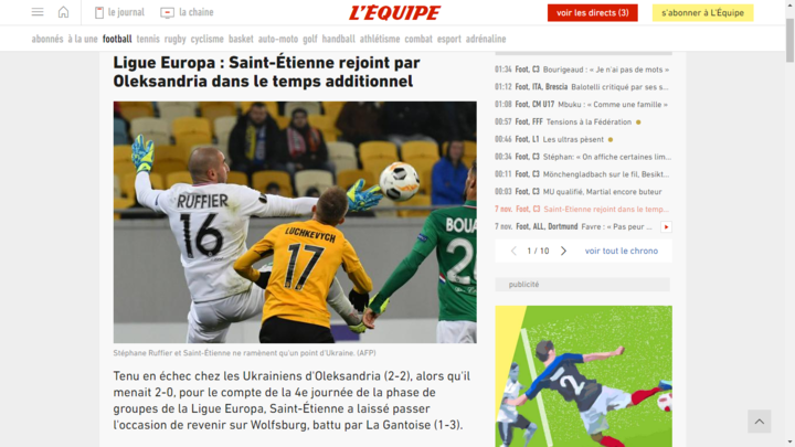 «После трех неудачных матчей в Лиге Европы (1 поражение и 2 ничьи) «Зеленые» долгое время считали, что победят во Львове, более чем в 800 километрах от Александрии, стадион которой не прошел инспекцию от УЕФА. К 83 минуте они вели со счетом 2:0 и не испытывали особых затруднений, но поплатились за крайнюю нехватку спокойствия и агрессии в своей штрафной, — начинает свой отчет журналист авторитетного издания L'Équipe. — Команде из Сент-Этьена было нелегко.