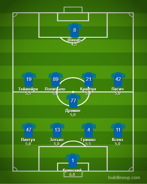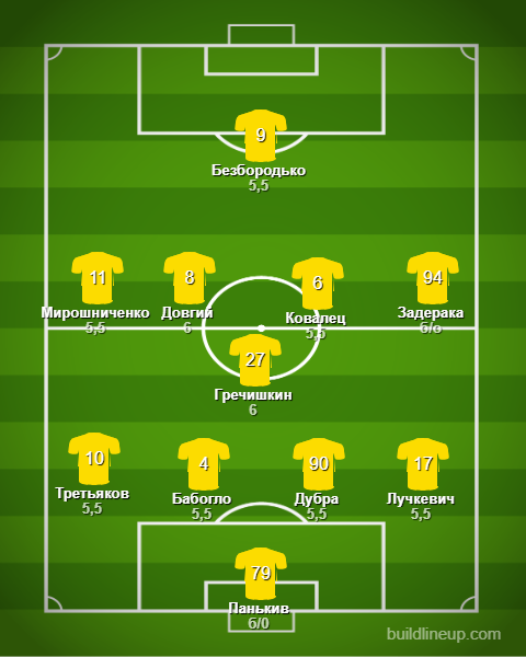 Зотько (28), Гришко (84), Фабиньо (90+3) - Ковалец (56), Бабогло (58), Довгий (66), Билык (90+2)
