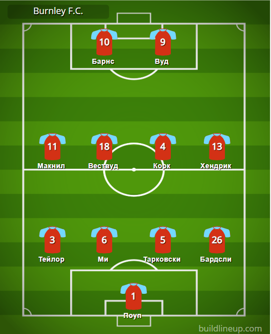 Бернли: Поуп – Тейлор, Ми, Тарковски, Бардсли – Макнил, Вествуд, Корк, Хендрик – Барнс (Родригес, 80), Вуд (Брэди, 90+4).