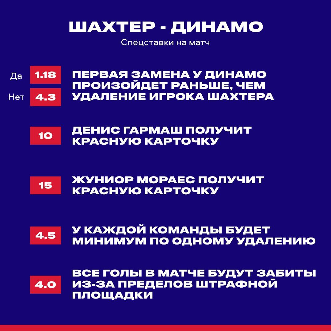 Например, что будет раньше, замена «Динамо» или удаление у «Шахтера». Коэффициент на рокировку состава киевлян 1,18, что составляет почти 80%. Что же касается возможного удаления, то вероятность того, что красные карточки будут показаны футболистам обеих команд, довольно высокая – кэф 4,5. А главные претенденты на то, чтобы увидеть перед собой красный свет – Денис Гармаш (10,0) и Мораес (15,0).