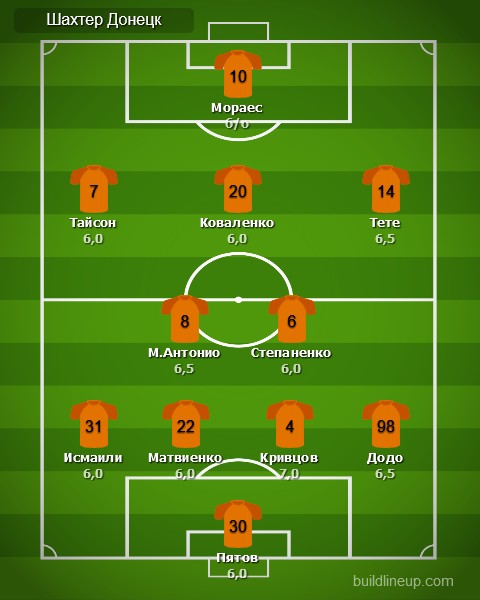 Замены «Шахтера»: Дентиньо - 6,0; Сергей Болбат - б/о; Майкон - б/о.