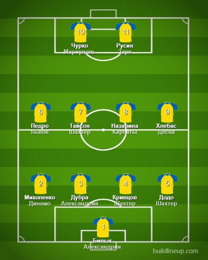 Олег Билык, «Александрия». Уже на 4-й минуте матча с «Олимпиком» случилось фиаско — основной вратарь «Александрии» Юрий Панькив получил красную карточку за фол последней надежды. Заменивший его Олег Билык сыграл достойно. 21-летний вратарь оставил свои ворота на замке, несмотря на то, что почти весь матч его команда играла в меньшинстве.
