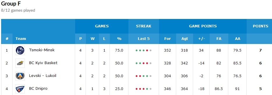 Первая победа «Днепра» в групповом турнире позволяет подопечным Дениса Журавлева надеяться на выход в следующую стадию Кубка Европы. Продолжит борьбу за это и «Киев-Баскет», потерпевший второе поражение подряд в еврокубке.