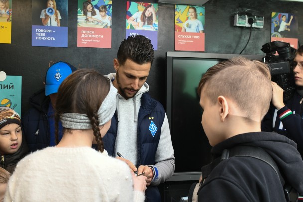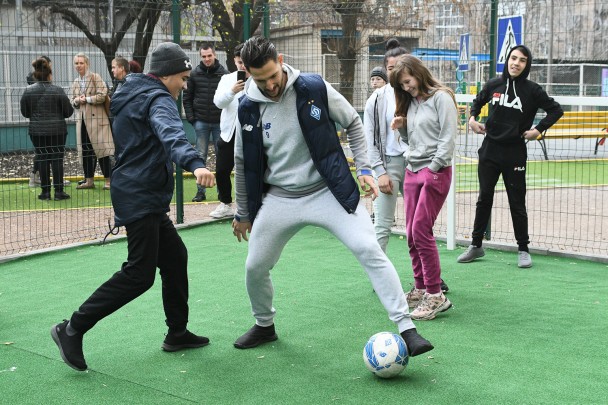 Фран Соль с женой Аидой подарили детям атрибуты для интересных активностей и занятий спортом от ФК «Динамо» Киев. Ведь проект «Динамо» становится ближе» призван мотивировать детей вести активный образ жизни. Сначала Фран спросил у детей, какой у них любимый вид спорта, и получил единогласный ответ – футбол. Для достижения высоких футбольных целей испанец посоветовал, в первую очередь, слушаться родителей, наслаждаться игрой, хорошо тренироваться и стремиться к воплощению своей мечты. Также динамовец поделился, что его семье очень нравится жить в Украине, ведь Киев – большой и красивый город.