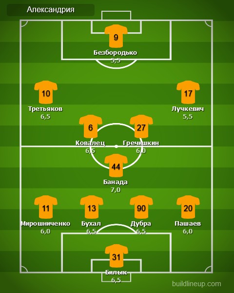 Замены «Александрии»: Максим Задерака - 6,0; Андрей Запорожан - 6,0; Антон Шендрик - 6,0.
