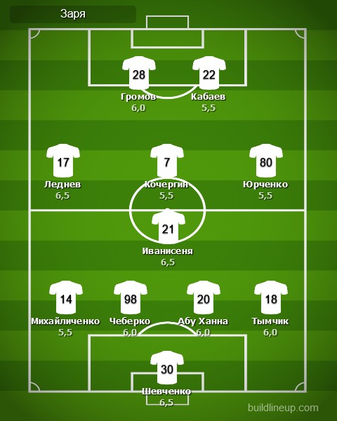Замены «Зари»: Дмитрий Хомченовский - 5,5; Назарий Русин - 5,5; Максим Лунёв - б/о.
