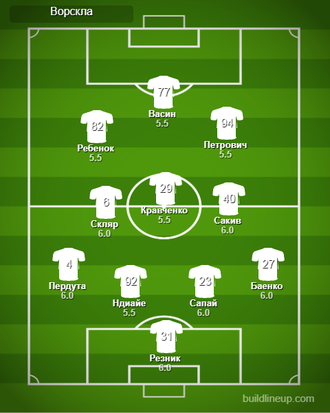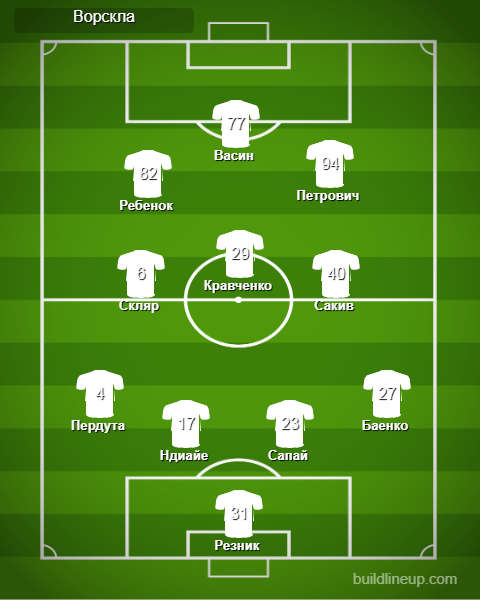 «Ворскла»: Дмитрий Резник, Игорь Пердута, Альюн Ндиайе, Вадим Сапай, Владимир Баенко (Зураб Очигава, 80), Александр Скляр, Дмитрий Кравченко, Павел Ребенок, Тарас Сакив (Юрий Козіренко, 65), Тодор Петрович, Денис Васин